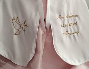Chaque cape de baptême est ornée d'une broderie unique, ajoutant une touche personnelle et spéciale à cet article symbolique. Que ce soit le prénom de l'enfant, la date de la cérémonie ou un motif significatif, la broderie fait de chaque cape un véritable trésor à chérir pour les années à venir.