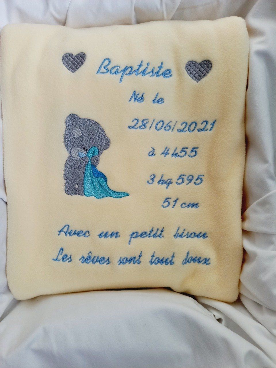 Couverture de naissance personnalisée modèle pour petit garçon mais peut êtres réaliser en rose pour une fille